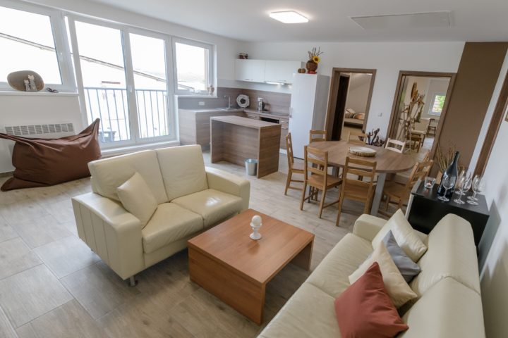 - nabízíme tři kompletně zařízené dvoulůžkové pokoje, v každém je možnost dvou přistýlek, včetně lůžkovin - koupelna se sprchovým koutem, WC a ručníky -společenská místnost s kompletně vybavenou kuchyní (plně vybavená kuchyňská linka s nádobím, varná deska a konvice, toustovač, mikrovlnná trouba, kávovar, topinkovač), součástí je vinotéka a lednice, - k dispozici WiFi připojení v celém sklípku - uložení kol v uzamykatelné místnosti - parkování pro auta přímo před sklepem - možnost venkovního posezení pod pergolou - stravování: 20m pizzerie, 250m restaurace Hotel Mádl, Vinařský dům Skoupil